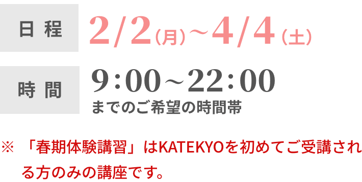 1対1の春期体験講習2/1~