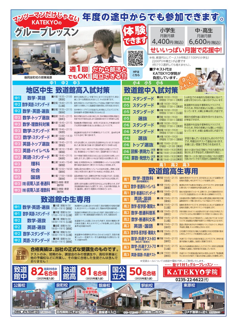 2025年1月11日に中高一貫校「致道館中学校」の受検が行われました KATEKYO学院の生徒さんからは、 82名が合格されました。(定員99名) みなさん、おめでとうございます!! 〉〉〉 続きを読む