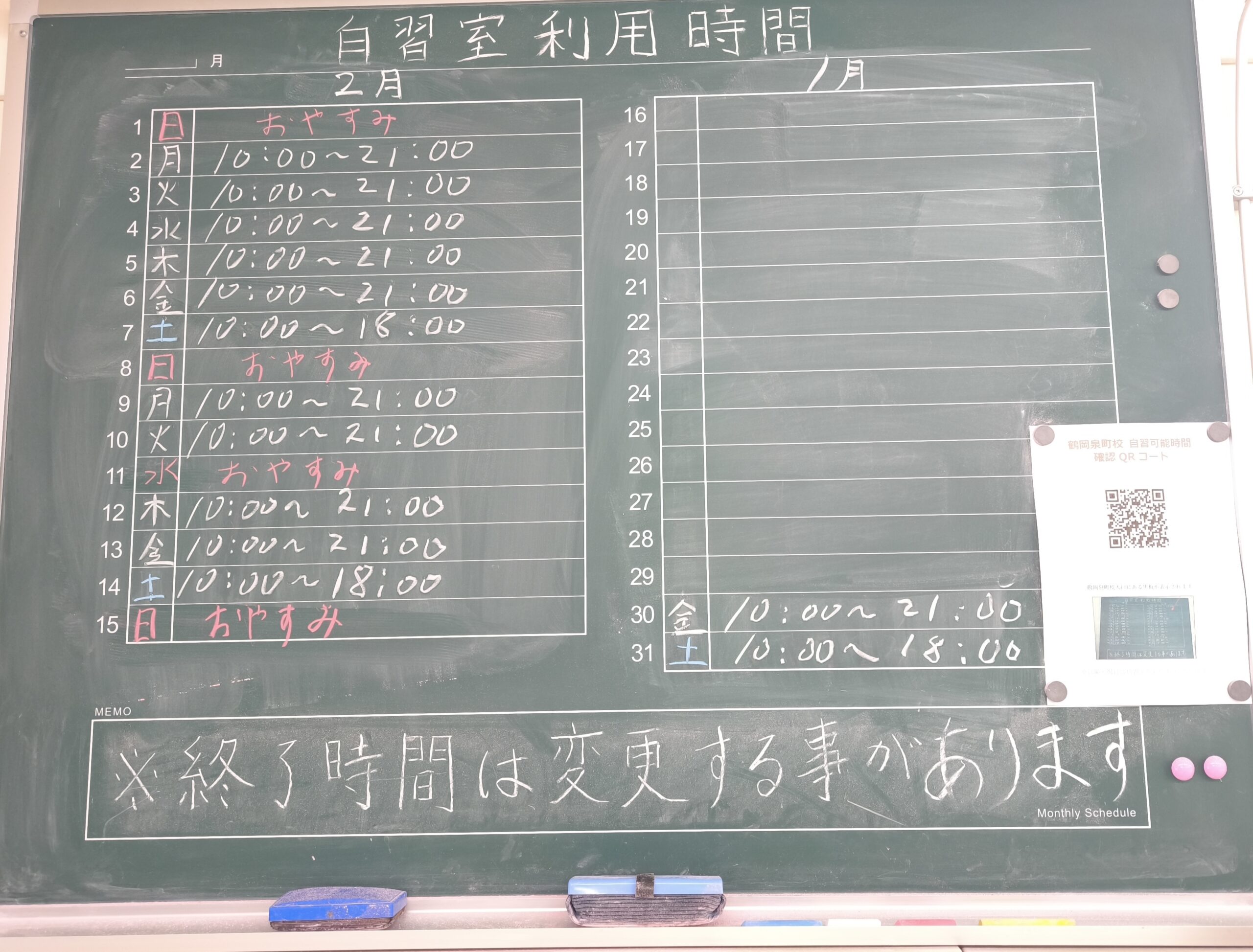 「にこ♡ふる」さんの近くにあります。高校にも近い立地ですので学校帰りに立ち寄りやすいと思います。(お弁当を食べたりできるお部屋もあります)教室の机のサイズも大きく、ゆったり学習できます。トイレも新しく、壁紙はムーミン柄でこちらもゆったりできます。