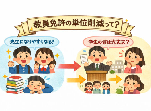 こんにちは、KATEKYO学院です。山形県内でも教員不足が課題となる中、文部科学省から「教員免許取得に必要な大学の単位数を削減する」という大きな方針が発表されました。これは、将来教員を目指す中高生や、… 〉〉〉 続きを読む