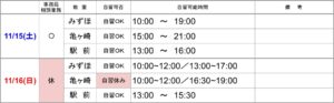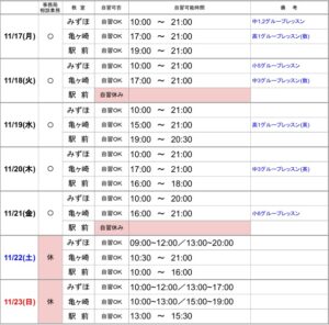 【酒田】自習可能時間のお知らせ(11/17~11/23)