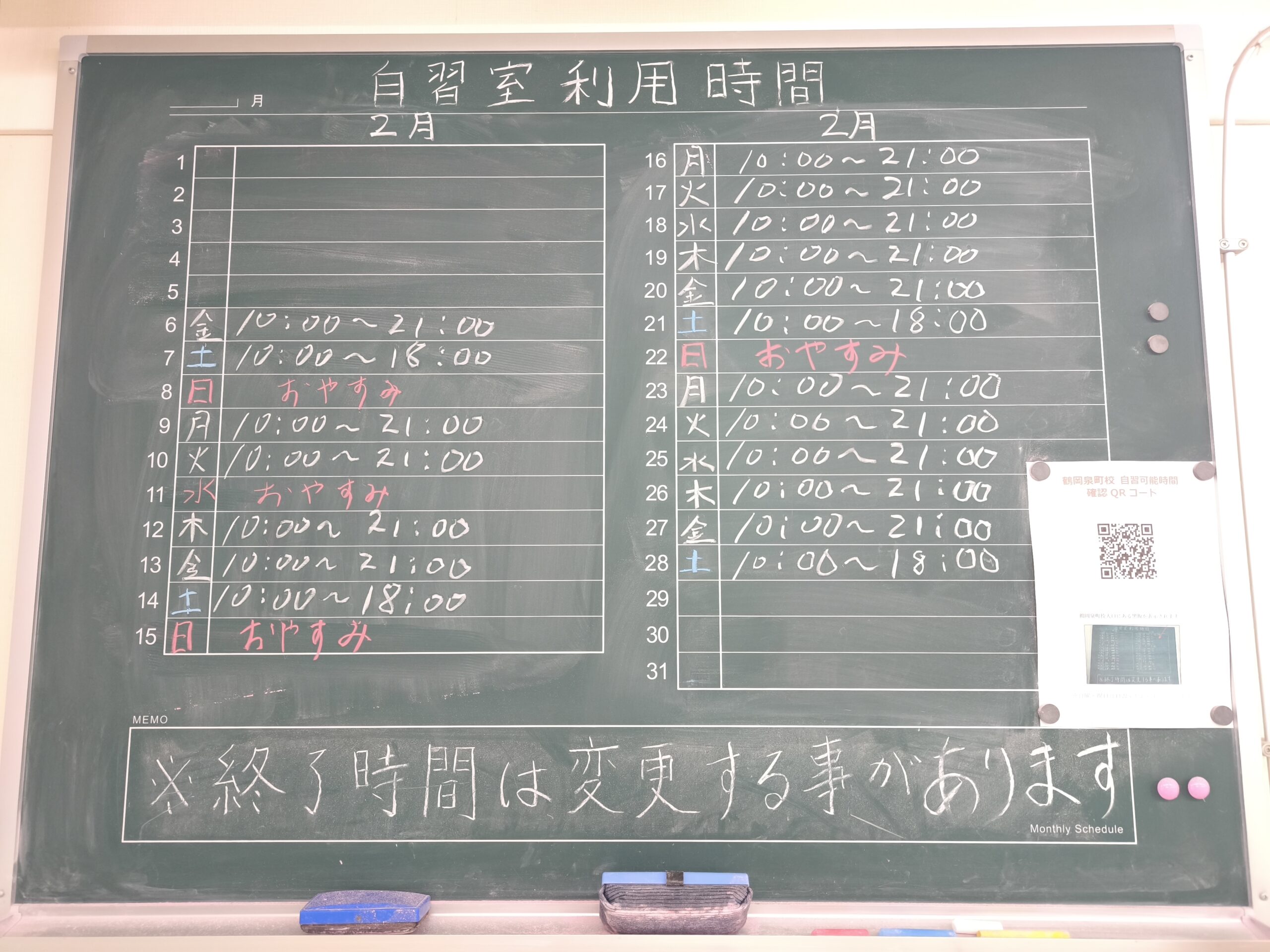 鶴岡泉町校の自習室利用時間は画像の通りです。