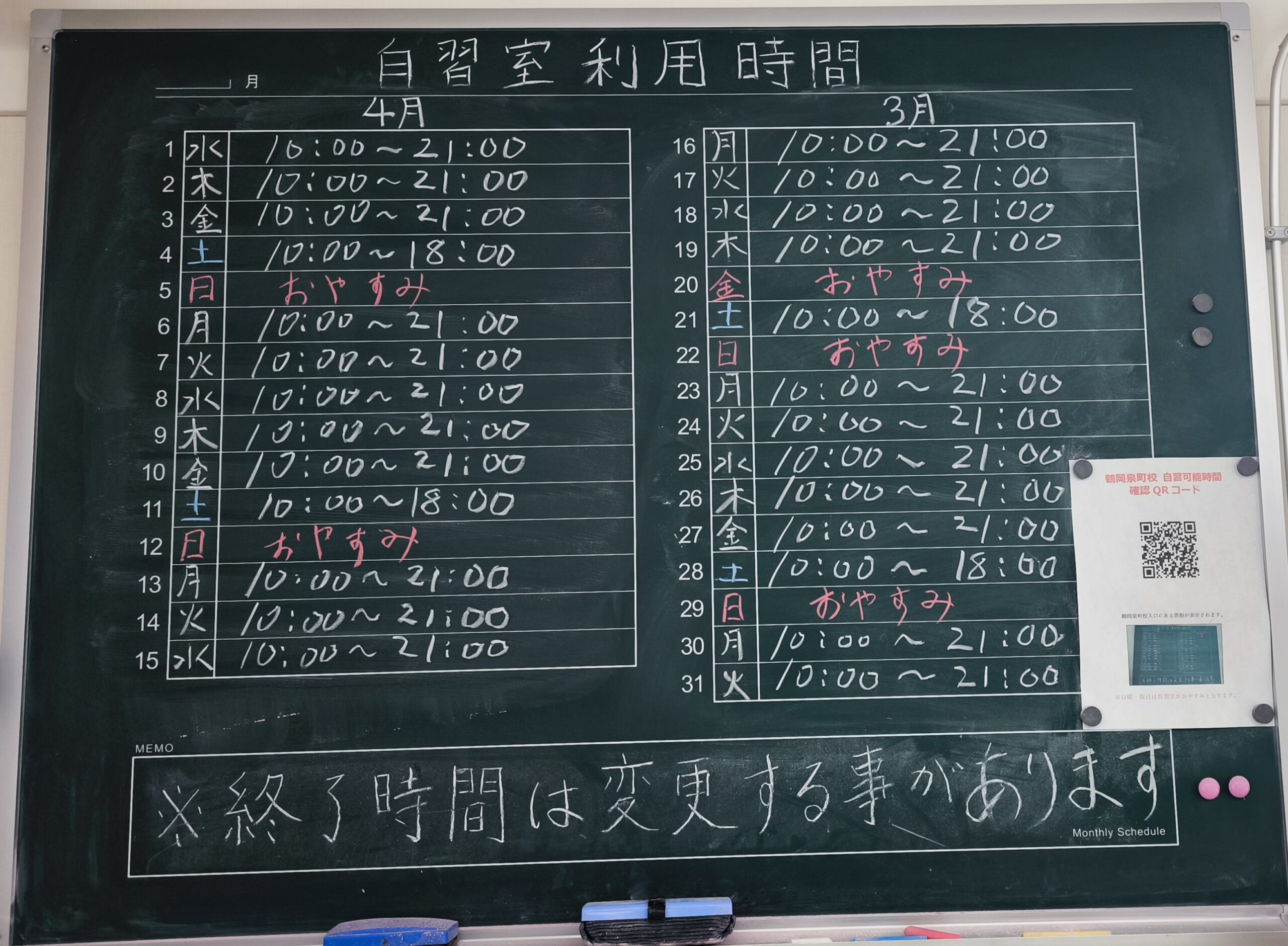 【米沢駅前・西校】自習可能時間のお知らせ(2/23~3/1)