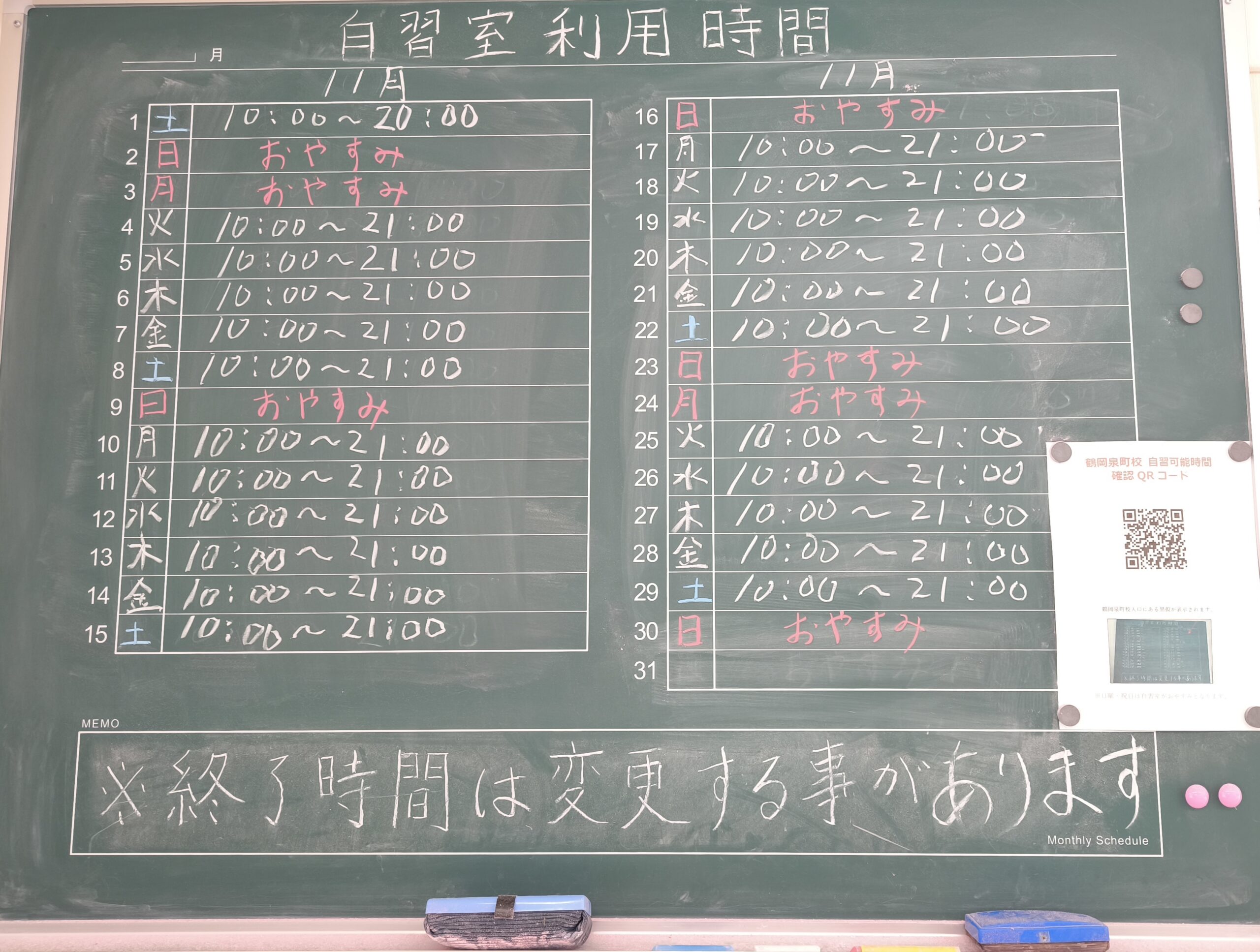 鶴岡泉町校の自習室利用時間は画像の通りです。 急な変更が出る場合もありますので、教室に来る前にもう一度確認してください。 感染症や自然災害等で学校・学年・学級が休業中の方は自習室の利用ができません。…